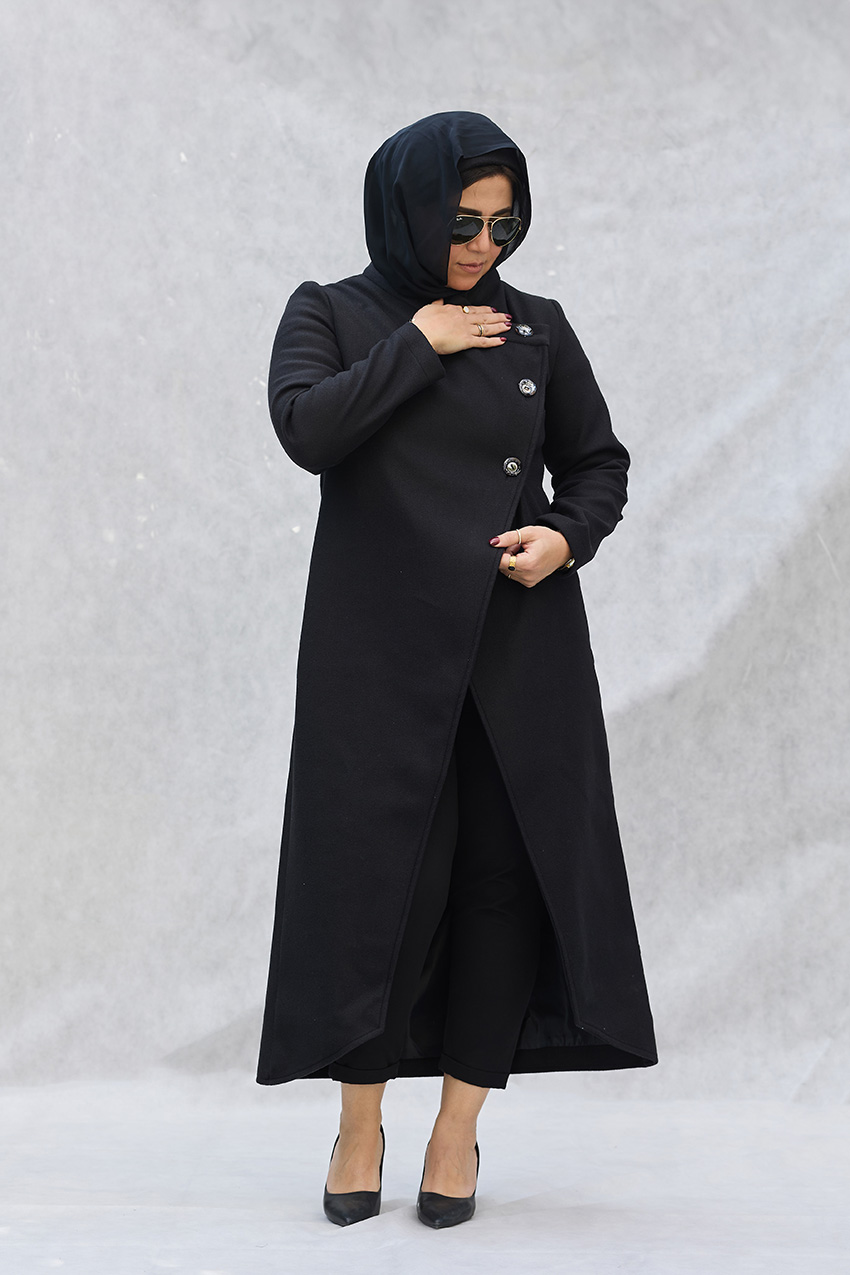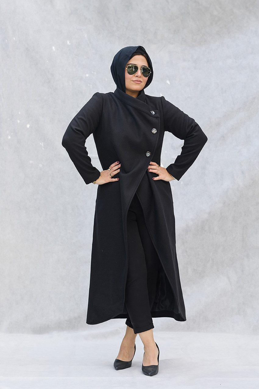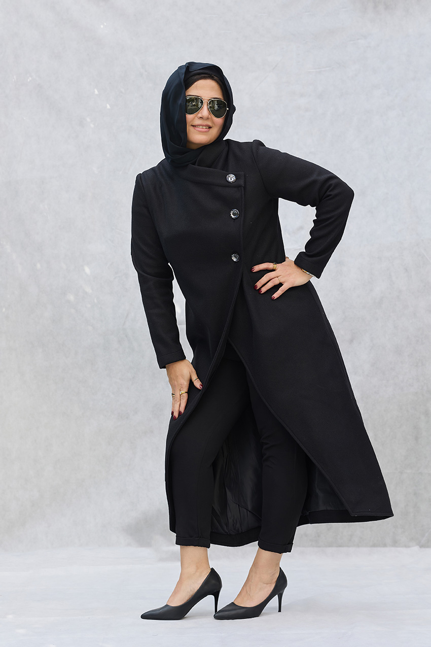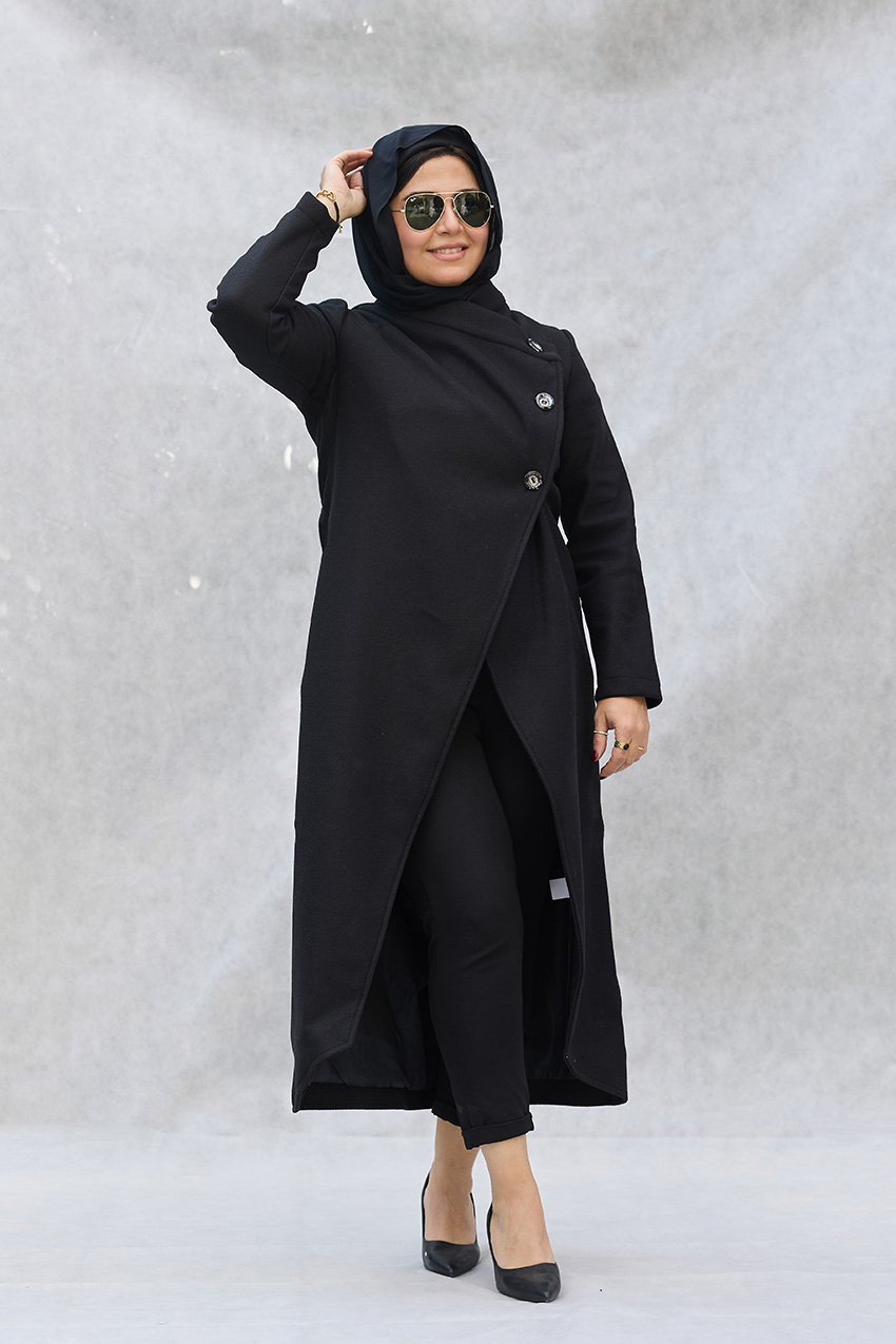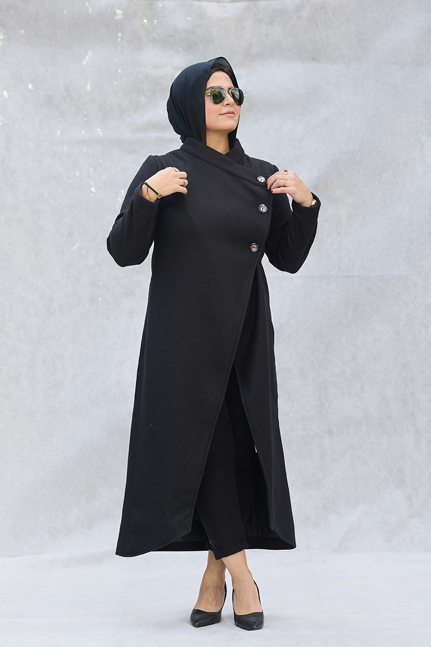 Leveled tailored coat with overlap closure detail