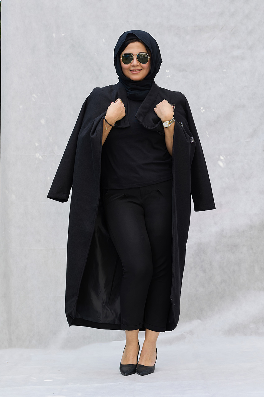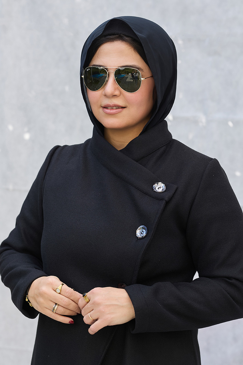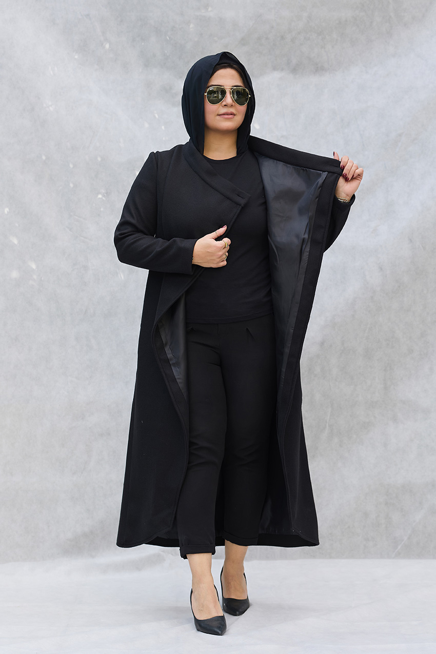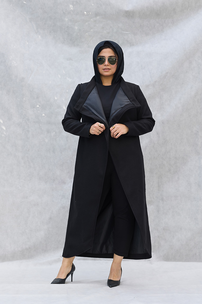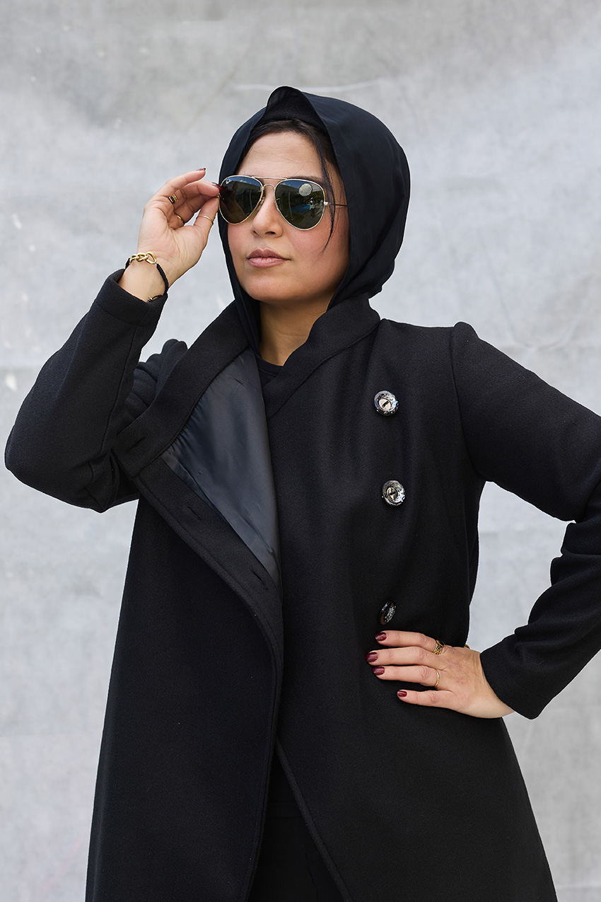 Leveled tailored coat with overlap closure detail