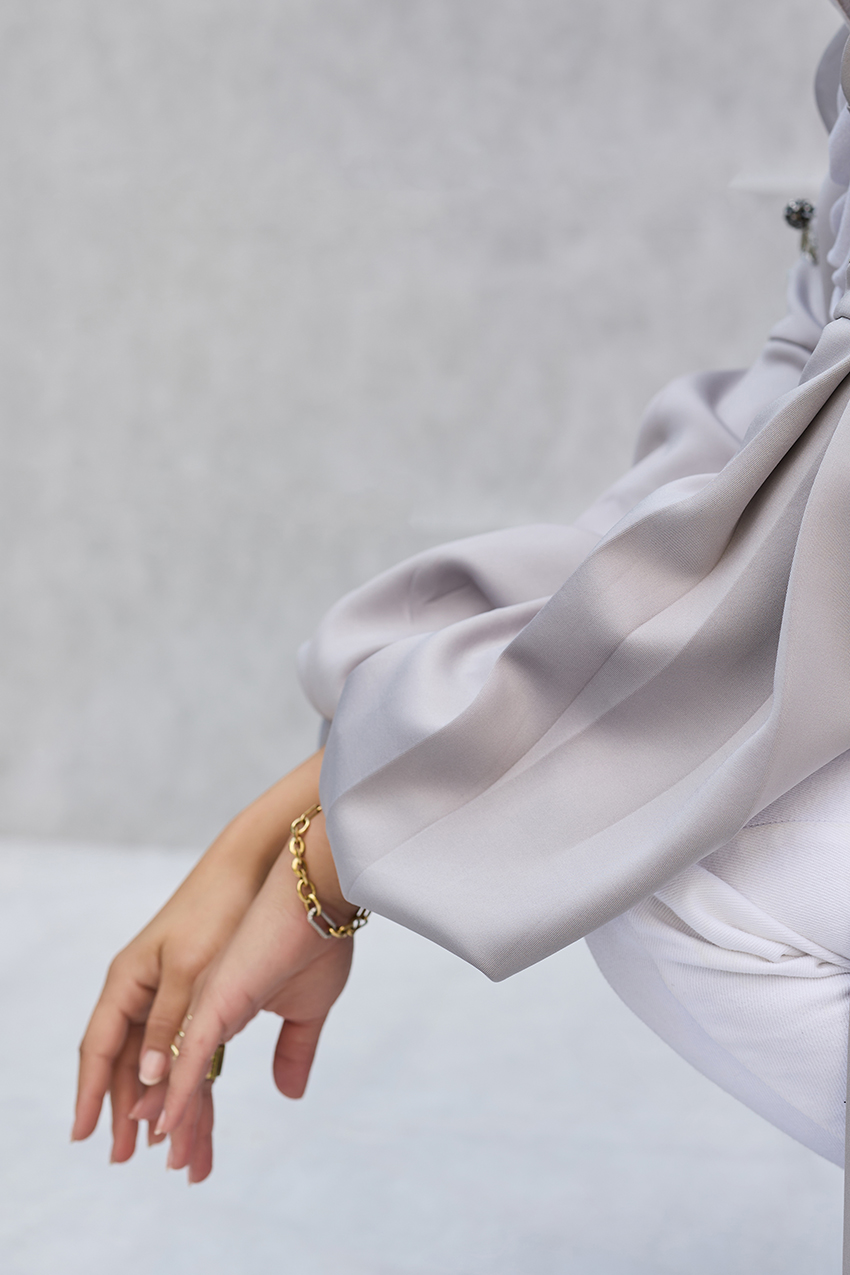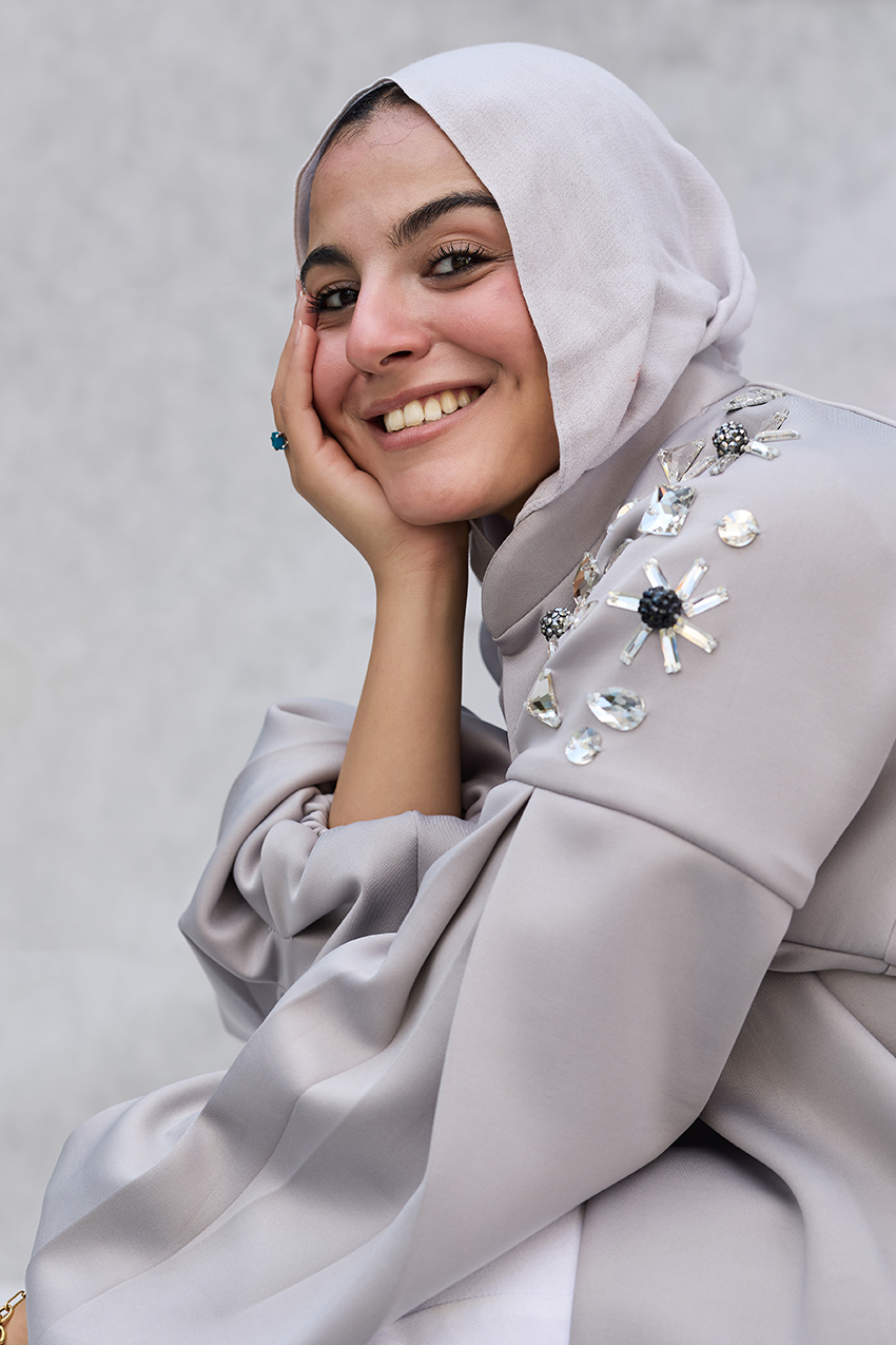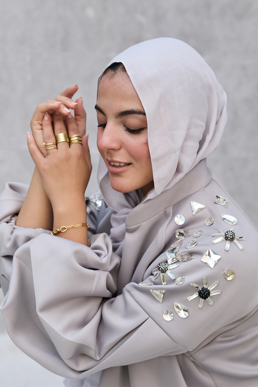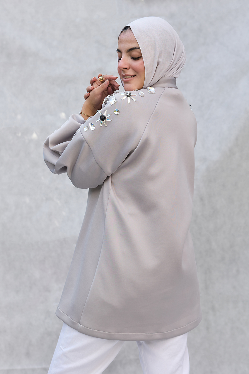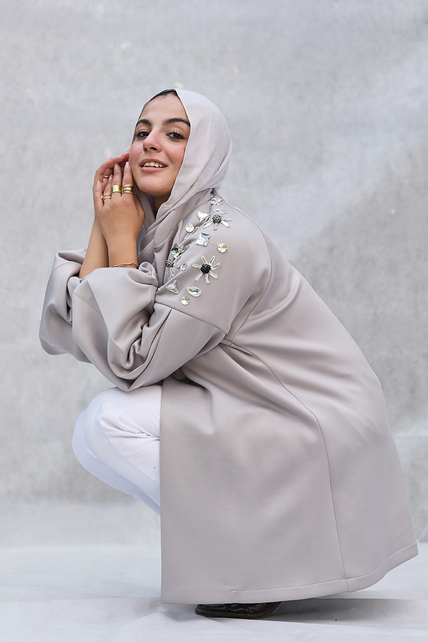 oversized puffy sleeves jacket with hand made crystal emblishments