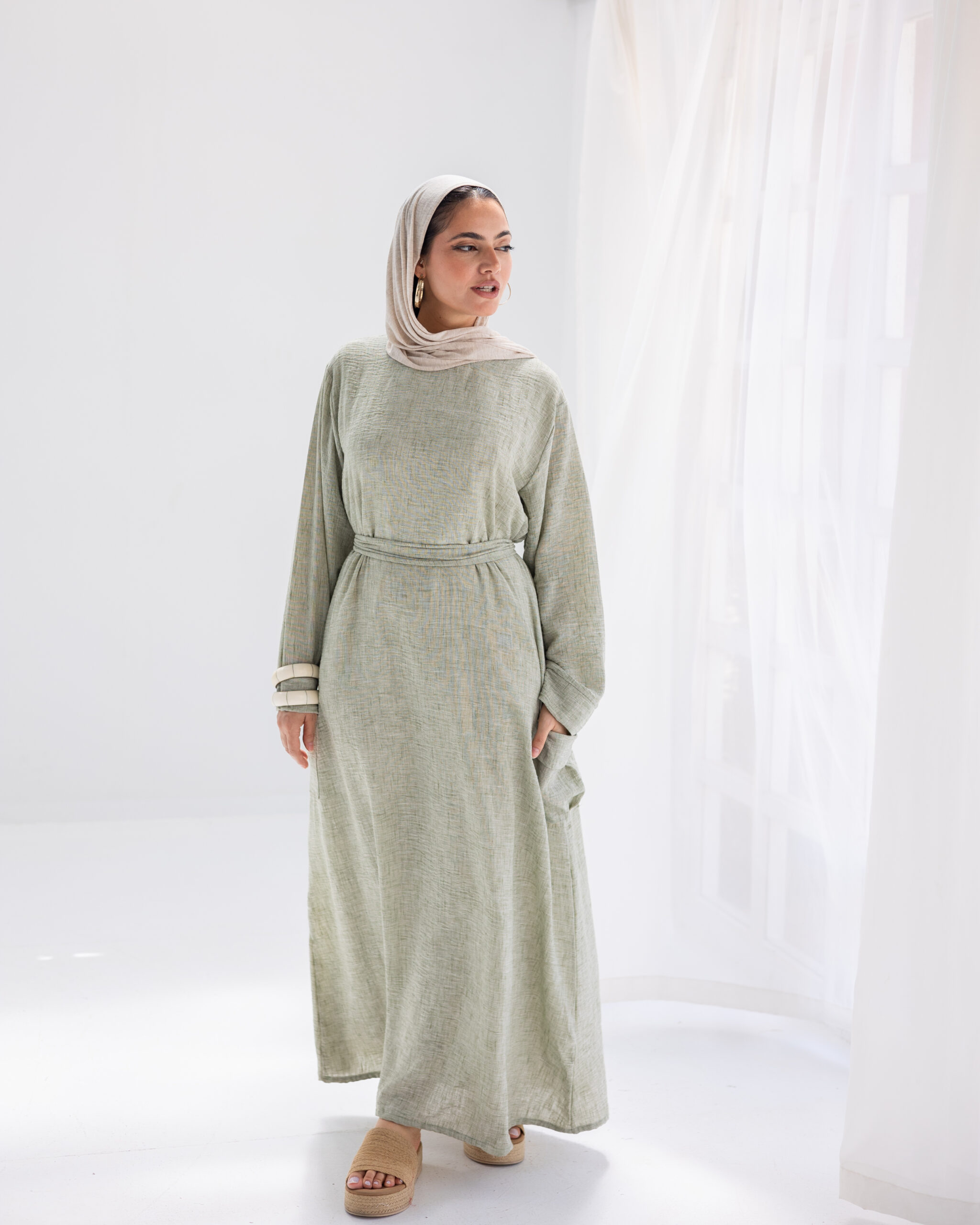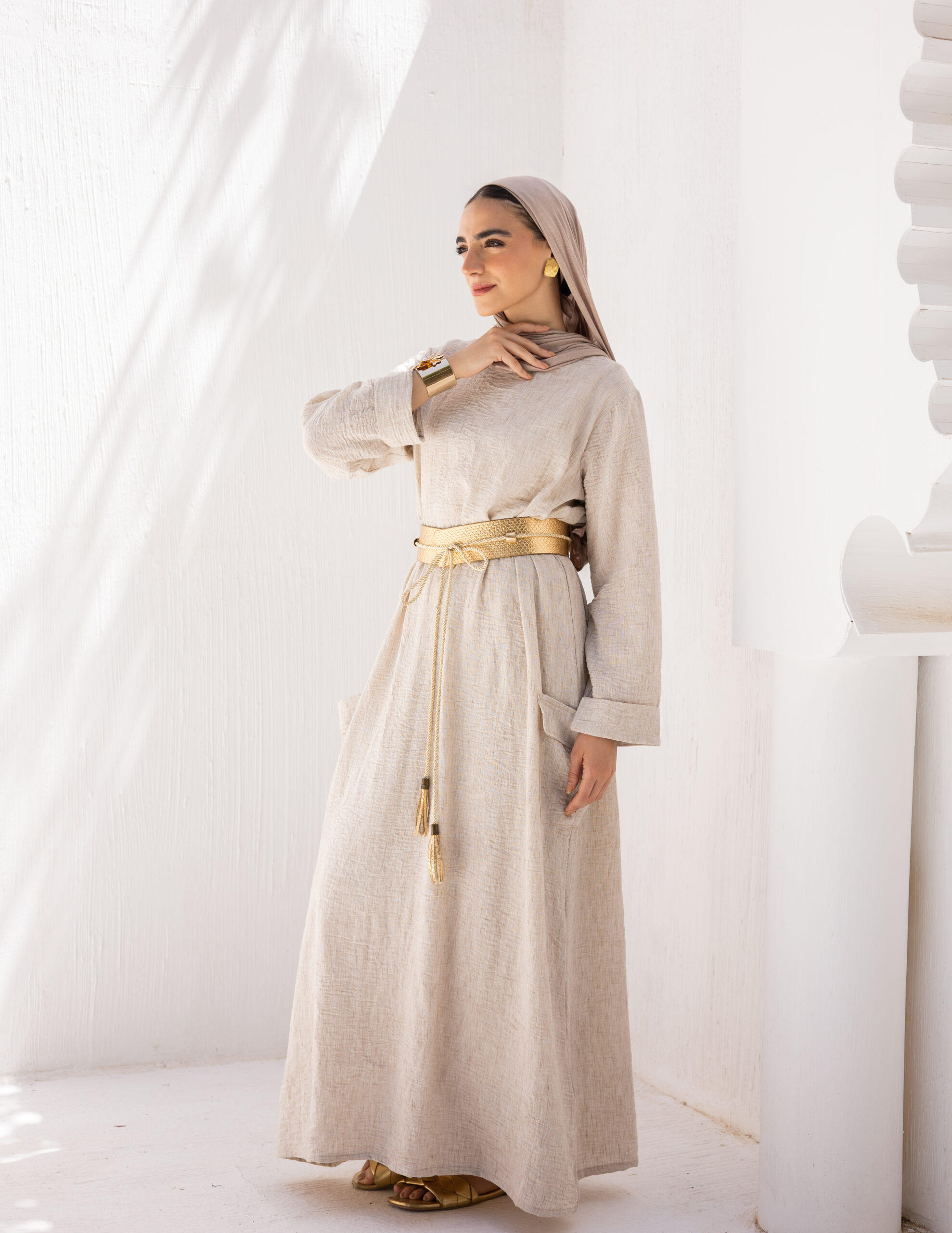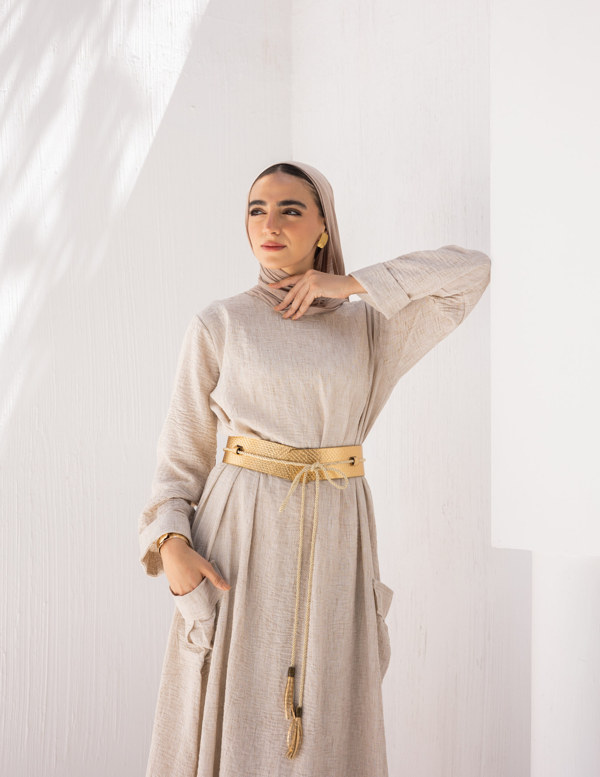 Minimal and versatile, this linen dress features deep patch pockets and an easy silhouette. A refined essential for graceful, grounded days.